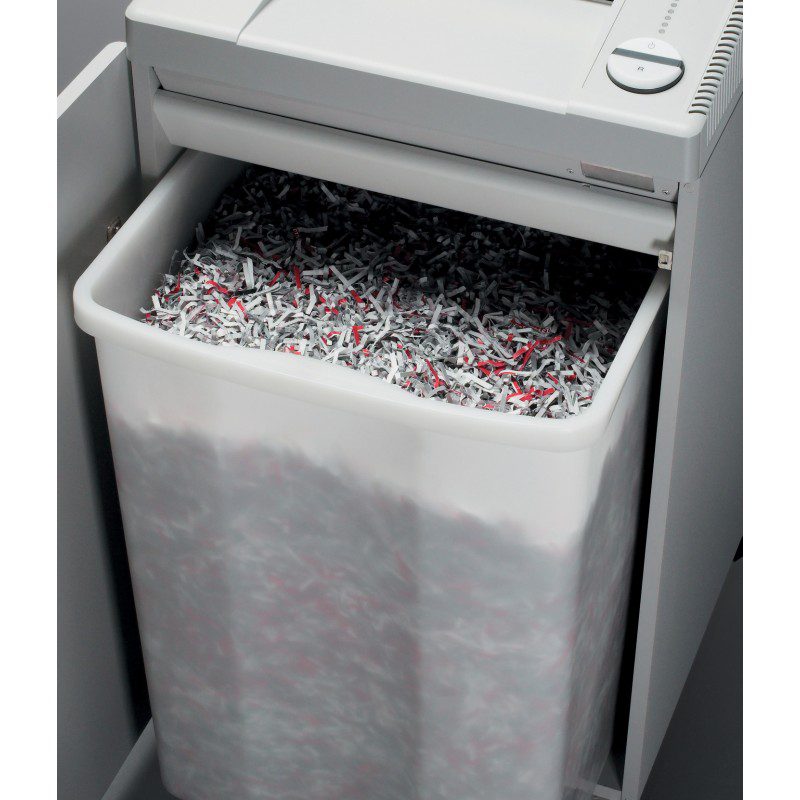 · Las hojas de papel introducidas se transforman en partículas de 0,8 x 5 mm.