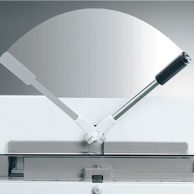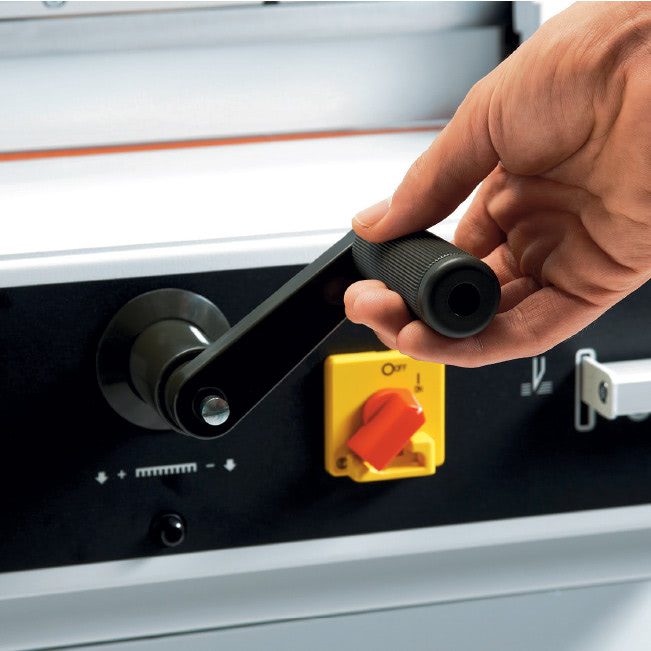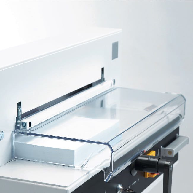 - Diseño Ergonómico y Seguro: Pisón manual de acción rápida y seguro sistema de cambio de cuchilla sin retirar los papeles, con protección para el operador.