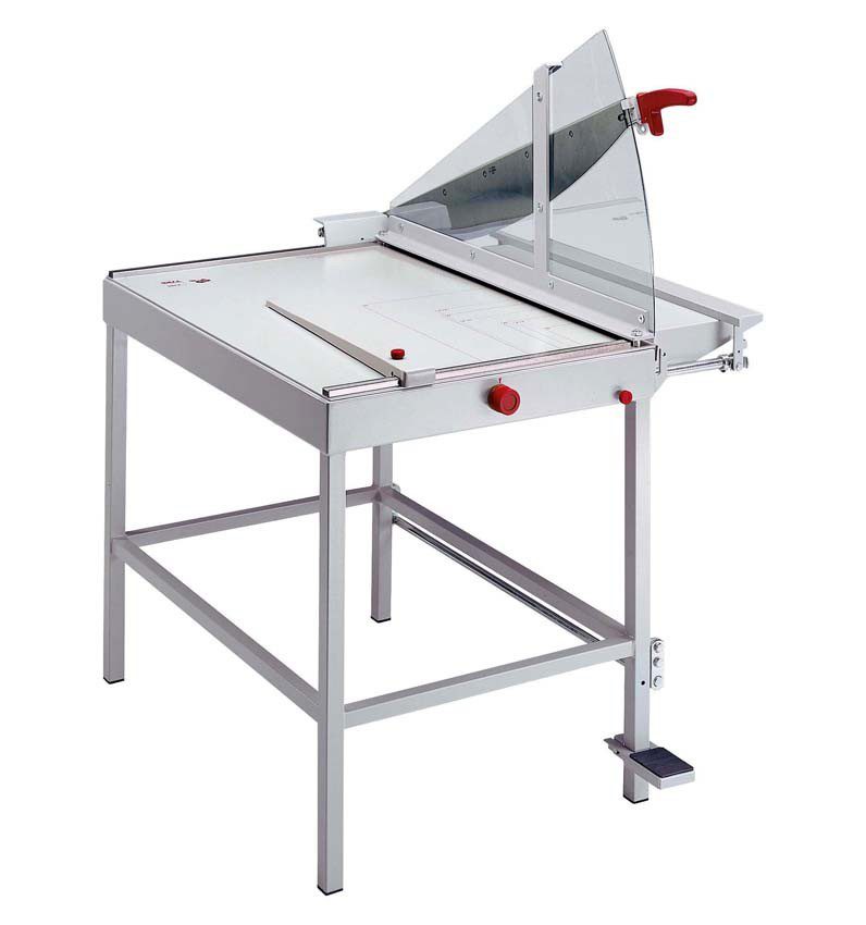 - Gran Rendimiento de Corte: Longitud de corte de 800 mm. Cuchillas reafilables de acero Solingen con ángulo de 75º (opcionalmente 25º). Capacidad de corte hasta 4 mm (40 hojas 80 g/m²).